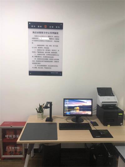 受理区是执法证据管理人员办公区域,配置为办公桌椅、台式电脑、真空封装机、执法证据管理系统(包括电子标签打印机、翻拍仪、桌面读写仪、扫描枪等);作为执法证据管理主要区间,受理区设置执法证据管理工作台,布置执法证据管理电脑,执法证据翻拍仪及执法证据管理系统对执法证据进行日常登记、出入管理。还可根据工作需要选择配置打印机、扫描仪、蓝光刻录机、执法证据处理设备等附属设备。